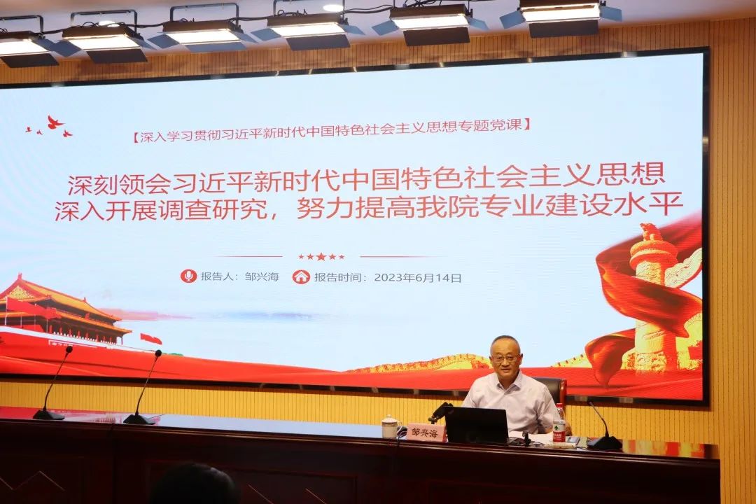 6月14日下午,我校在教学楼209多功能厅举行主题教育第六场报告会,由常务副校长邹兴海作题为“深入调查研究,努力提高专业建设水平”的专题报告。全校党员、教职工和入党积极分子参加,并通过钉钉网络平台向各年级学生直播。